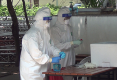 จนท.สวมชุดพีพีอีทำความสะอาด สน.วังทองหลาง หลังคฟ.ติดโควิด