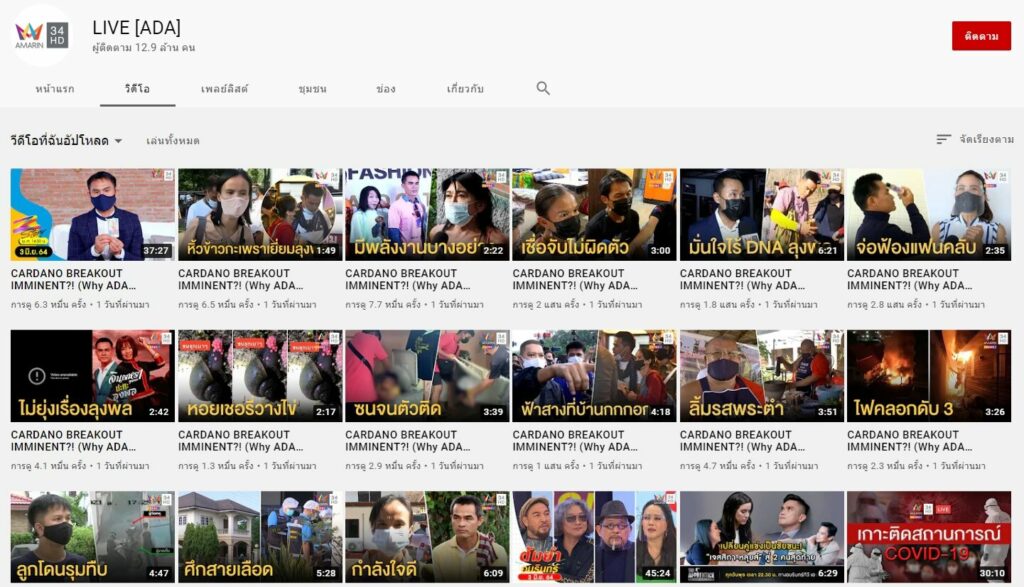 นอกจากชื่อของช่องที่เปลี่ยนไปแล้วนั้น ชื่อของคลิปวิดีโอต่างๆ ยังถูกเปลี่ยนเป็นชื่อ CARDANO BREAKOUT IMMINENT?! (Why ADA Price Is Set For Big Week) MAJOR CARDANO EVENT: ADA 10$ SOON ซึ่ง แปลว่า การแหกคุกของ CARDANO ใกล้เข้ามาแล้ว (สาเหตุที่ ADA พุ่งแรงในช่วงสัปดาห์นี้ พุ่งแตะ 10 ดอลลาร์เร็วๆ นี้)
