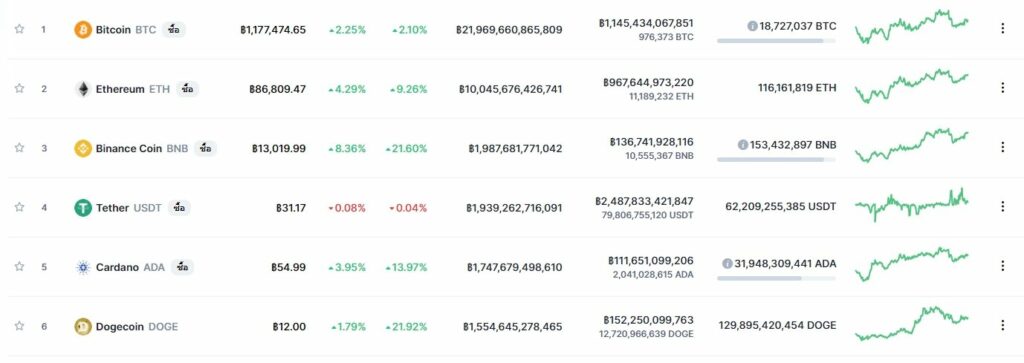 ทั้งนี้ สกุลเงิน คาร์ดาโน หรือ CARDANO (ADA) เปิดตัวในปี 2017 ได้รับการพัฒนาโดย Input Output Hong Kong ซึ่งเป็นบริษัทพัฒนาบล็อกเชน ออกแบบมาให้เหรียญ ทำหน้าที่เหมือนสกุลเงินดิจิตัลอื่นๆ ปัจจุบันอยู่ในอันดับ 5 ของตลาด เหนือ Dogecoin อยู่ 1 อันดับ โดย มีมูลค่าต่อ 1 หน่วยที่ 55 บาท มีมูลค่าตามราคาตลาด 1,747,679,498,610 บาท