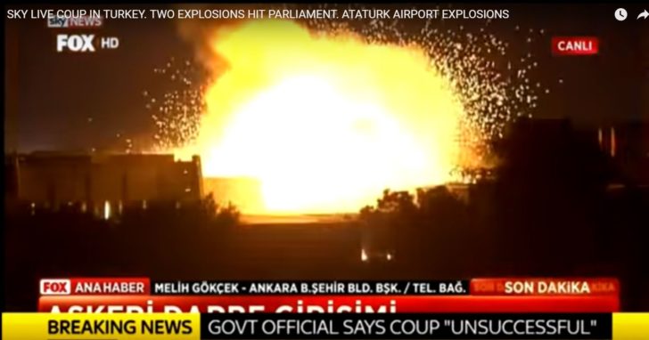 เว็บไซต์ ดิ อินดีเพนเดนต์ ของอังกฤษรายงานว่า ประชาชนที่อยู่ในบริเวณอาคารรัฐสภาตุรกีสามารถถ่ายคลิปวินาทีระทึกที่เครื่องบินของกองทัพซึ่งพยายามก่อการรัฐประหารโค่นล้มรัฐบาลของประธานาธิบดีเรชิป เทย์ยิป แอร์ดวน ทิ้งระเบิดใส่อาคารรัฐสภา ในกรุงอังการา เมืองหลวงของประเทศ โดยรายงานข่าวจากบางแหล่งระบุว่า ระเบิดมีเป้าหมายโจมตีอาคารรัฐสภาโดยตรง