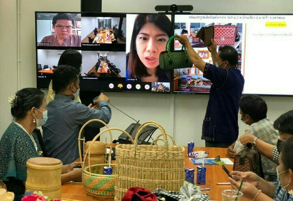 ในการนี้ ได้รับเกียรติจาก คุณธัญญ์นภัส กิ่งสุวรรณ (อุ๋งอิ๋ง)Designer, Creative, Writer, เจ้าของแบรนด์ THORR เป็นวิทยากรบรรยาย ผ่านระบบ Video Conference ให้คำแนะนำแนวทางการพัฒนาผลิตภัณฑ์ และโอกาสความเป็นไปได้ในมุมมองด้านการตลาด (การตลาดนำการผลิต) การออกแบบบรรจุภัณฑ์ให้เหมาะสมและสวยงาม การควบคุมคุณภาพในการผลิต การบริหารจัดการต้นทุนการผลิต รูปแบบการพัฒนาผลิตภัณฑ์ที่แสดงความเป็นอัตลักษณ์ทางวัฒนธรรม และภูมิปัญญาท้องถิ่นให้เชื่อมโยงตลาดสู่สากล โดยจังหวัดนครพนม จะขยายโอกาสความร่วมมือกับ THORR ในการพัฒนาผลิตภัณฑ์ไปสู่ตลาดโลกได้มากขึ้น จากเดิมที่มีความร่วมมือร่วมกันมาตั้งแต่จุดเริ่มต้นโครงการผ้าทออีสานสู่สากลในปีที่ผ่านมาโดยร่วมกันพัฒนาผลิตภัณฑ์ผ้า ต่อยอดเป็นคู่ค้ากับกลุ่มทอผ้าบ้านหนองนางด่อน อำเภอวังยาง มียอดซื้อขายสร้างรายได้ให้กลุ่มกว่า 100,000 บาท สร้างเครือข่ายการพัฒนาและเป็นคู่ค้ากับกลุ่มทอเสื่อกกบ้านเหล่าพัฒนา อำเภอนาหว้า มียอดซื้อขายสร้างรายได้ให้กลุ่มกว่า 500,000 บาท และกลุ่มจักสานผลิตภัณฑ์ไม้ไผ่ บ้านนาคูณใหญ่ อำเภอนาหว้า มียอดซื้อขายสร้างรายได้ให้กลุ่มกว่า 100,000 บาท นอกจากนี้ยังเชื่อมโยงพัฒนาและเป็นคู่ค้ากับกลุ่มผู้ผลิต ผู้ประกอบการ OTOP จังหวัดนครพนมอย่างต่อเนื่อง เป็นตลาดที่กำลังการผลิตมาจากชุมชน กระจายรายได้ สร้างงาน สร้างอาชีพ ทำให้ชุมชนเข้มแข็ง ผู้สูงอายุมีกำลังใจ สุขภาพแข็งแรง มีสังคม มีรายได้ สร้างงานให้คนรุ่นใหม่ไม่ต้องวิ่งเข้าเมืองใหญ่ เพื่อไปหางานทำ ปลูกฝังให้คนรุ่นหลังเห็นคุณค่าต้นทุนทางวัฒนธรรมและภูมิปัญญาท้องถิ่น