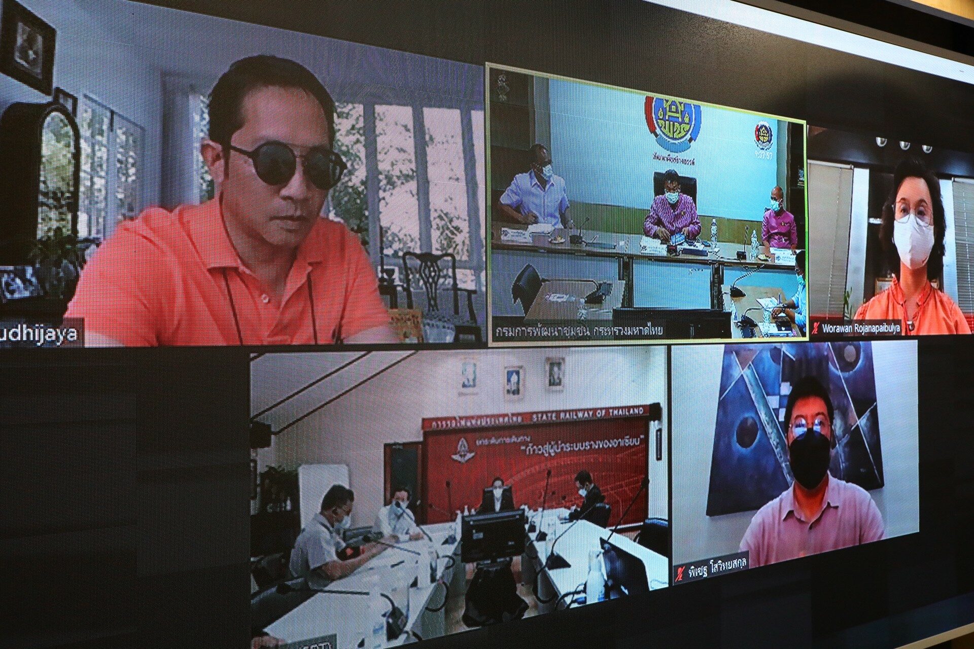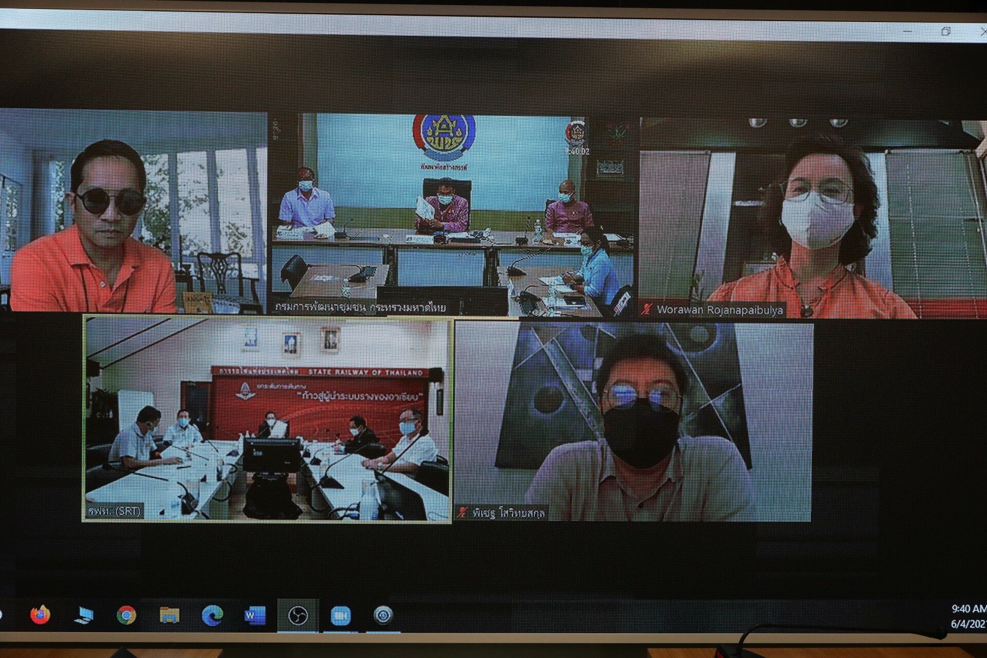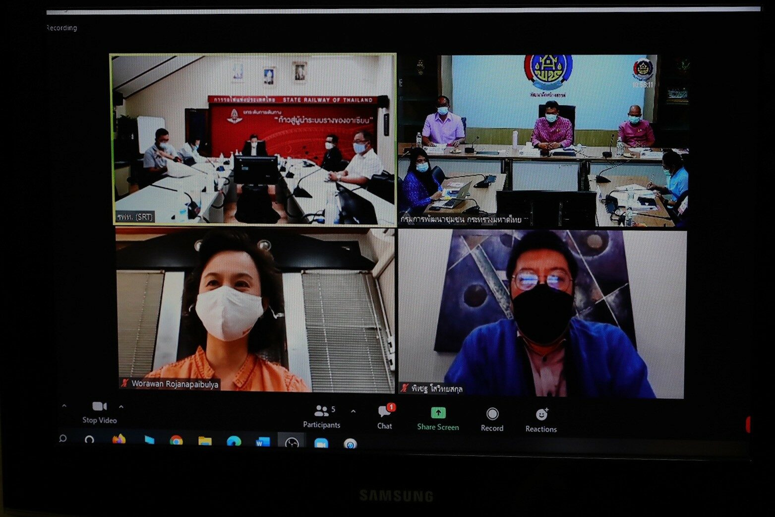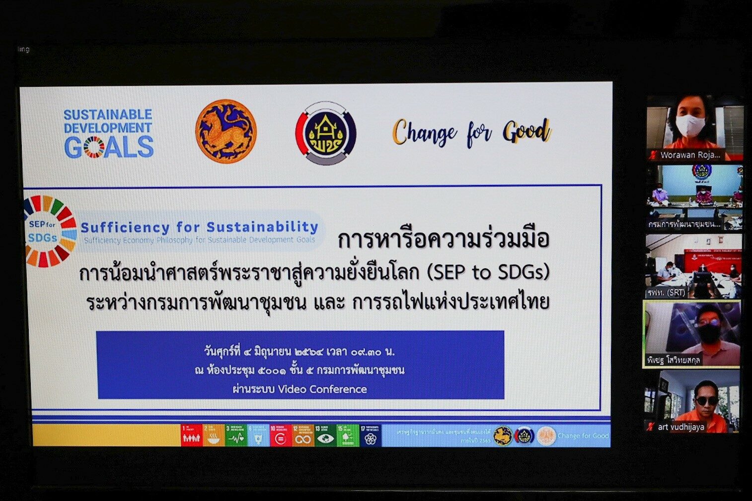 วันที่ 4 มิถุนายน 2564 นายสุทธิพงษ์ จุลเจริญ อธิบดีกรมการพัฒนาชุมชน กระทรวงมหาดไทย และนายนิรุฒ มณีพันธ์ ผู้ว่าการรถไฟแห่งประเทศไทย (รฟท.) หารือการดำเนินงานโครงการพัฒนาพื้นที่ต้นแบบการพัฒนาคุณภาพชีวิตตามหลักทฤษฎีใหม่ ประยุกต์สู่ “โคก หนอง นา โมเดล” ระหว่างกรมการพัฒนาชุมชน และ การรถไฟแห่งประเทศไทย โดยมี นายสุรศักดิ์ อักษรกุล รองอธิบดีกรมการพัฒนาชุมชน นายธนวัฒน์ ปิ่นแก้ว ผู้อำนวยการสถาบันการพัฒนาชุมชน นางสาวนิภา ทองก้อน ผู้อำนวยการสำนักเสริมสร้างความเข้มแข็งชุมชน รศ.วรวรรณ โรจนไพบูลย์ ผศ.พิเชฐ โสวิทยสกุล ที่ปรึกษาอธิบดีกรมการพัฒนาชุมชน และผู้บริหาร กรมการพัฒนาชุมชน พร้อมด้วย นายไพบูลย์ สุจิรังกุล วิศวกรใหญ่ฝ่ายการช่างโยธา และคณะผู้บริหารการรถไฟแห่งประเทศไทย, มล. อภิชิต วุฒิชัย ร่วมในการประชุม ผ่านระบบวีดิทัศน์ทางไกล (video conference) ด้วยโปรแกรม zoom cloud meeting