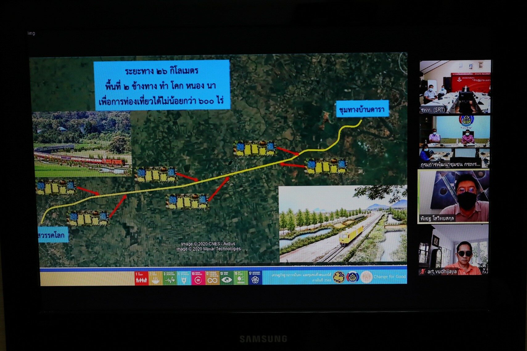ตั้งแต่ปี 2563 เป็นต้นมา กรมการพัฒนาชุมชน ได้ขับเคลื่อนโครงการพัฒนาพื้นที่ต้นแบบการพัฒนาคุณภาพชีวิต ตามหลักทฤษฏีใหม่ประยุกต์สู่ “โคก หนอง นา โมเดล” จนเกิดแหล่งเรียนรู้ 32 แห่ง ผู้นำต้นแบบ 1,500 คน และเครือข่าย 22,500 คน และในปี 2564 การดำเนินโครงการพัฒนาหมู่บ้านเศรษฐกิจพอเพียง ใน 11,141 หมู่บ้าน ปัจจุบันโครงการ “โคก หนอง นา พช.” มีผู้สนใจเข้าสมัครแล้วกว่า 35,503 ครัวเรือน และจ้างงานสำหรับผู้ได้รับผลกระทบการแพร่ระบาดของเชื้อไวรัสโคโรนา (COVID-19) จำนวน 9,157 ราย และเกิดการพัฒนาเป็นพื้นที่เรียนรู้ให้กับประชาชนครอบคลุมทุกภูมิภาค 76 จังหวัด ซึ่งการก้าวเข้ามาของการรถไฟแห่งประเทศไทย ในการบูรณาการกับกรมการพัฒนาชุมชน ต่อจากนี้ เชื่อว่าด้วยศักยภาพ ที่เชื่อมโครงข่ายการขนส่งมวลชนทุกภูมิภาค คู่กับสังคมไทยมาช้านาน เส้นทาง 2 ข้างรางรถไฟ ของการรถไฟแห่งประเทศไทย ไม่ว่าจะอยู่ในภูมิสังคมใด จะเป็นการสร้างสรรค์สิ่งดีงามเป็นปรากฏการณ์ใหม่ที่พิสูจน์ให้เห็นถึงคุณค่าในหลักปรัชญาของเศรษฐกิจพอเพียง และทฤษฎีใหม่ให้เป็นประจักษ์ ที่นอกจากการพัฒนาพื้นที่เพื่อช่วยให้ผู้ยากไร้ ได้เข้าทำประโยชน์ในที่ดิน สร้างอาชีพ สร้างผลผลิต ก่อเกิดรายได้ มีความมั่นคงในชีวิตแล้ว ผลพลอยได้อีกประการคือ เกิดความสวยงาม ในเส้นทางที่จะเล่าเรื่องราววิถีชีวิต อัตลักษณ์ของชุมชน ท้องถิ่น เกิด Landmark ที่จะช่วยส่งเสริมในธุรกิจการท่องเที่ยว และยังเกิดพื้นที่สร้างความมั่นคงทางอาหารและความหลากหลายทางชีวภาพให้แก่ชุมชนสองข้างทางรถไฟในอนาคตอีกด้วย