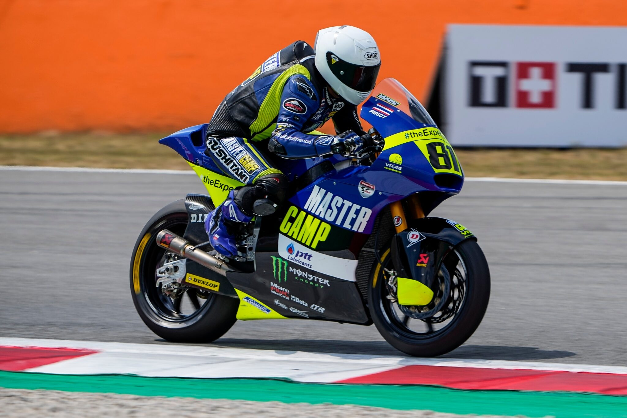 “เคเค” เขมินท์ คูโบะ นักบิดไทยสังกัดวีอาร์โฟร์ตี้ซิกซ์ มาสเตอร์ แคมป์ ทีม ประเดิมเวทีโมโตทู ด้วยกริดที่ 30 ในเกมรอบชิงชนะเลิศที่ คาตาลุนญ่า หลังบิดทำเวลาได้ดีที่สุดในกลุ่มนักบิดไวลด์การ์ด